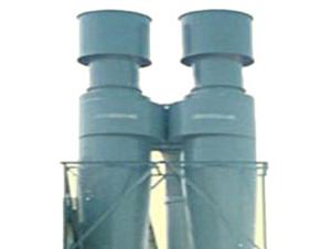 含尘气流经收缩形进口切向进入除尘器蜗壳时,由上向下作螺旋形旋转运动,尘粒在离心力的作用下被抛向器壁,并沿器壁下旋,进入特殊结构的密封收尘装置内;净化后的气体由下向上作内螺旋形旋转经芯管排出。